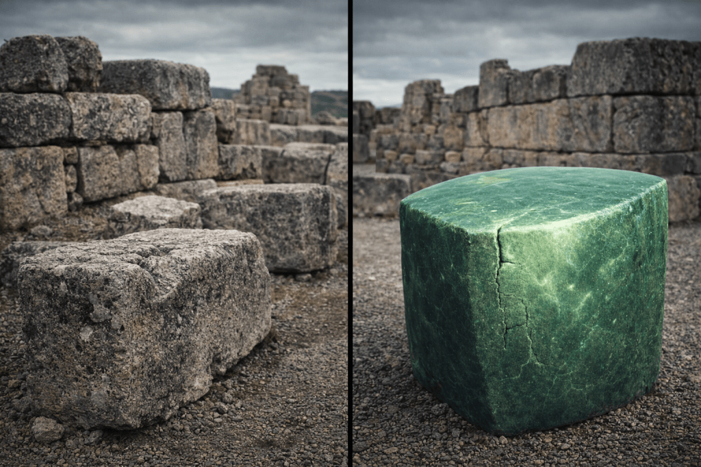 Eğer o kıyılarda gelişmiş yerleşimler varsa, geriye ne kalmış olabilir? Demir paslanır. Ahşap çürür. Kâğıt, deri birkaç nesilde kaybolur. 12.000 yıllık su altı koşullarında bildiğimiz neredeyse hiçbir malzeme ayakta kalamaz. Ama bir malzeme kalabilir: Doğadaki en yüksek kırılma tokluğuna sahip, suya karşı kimyasal olarak inert, asitlere ve bazlara dirençli, don-çözülme döngülerinde çatlamayan — yeşimtaşı.